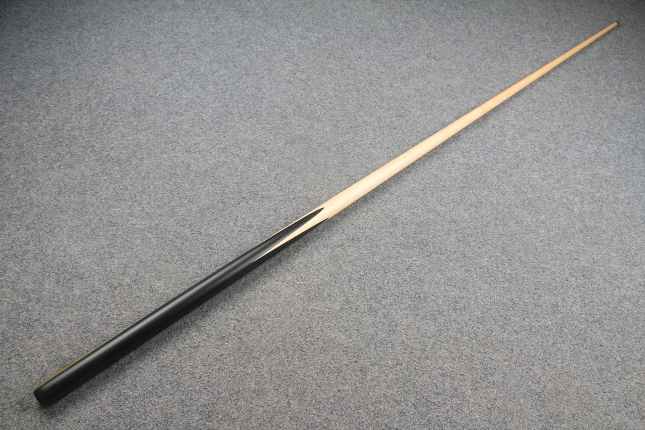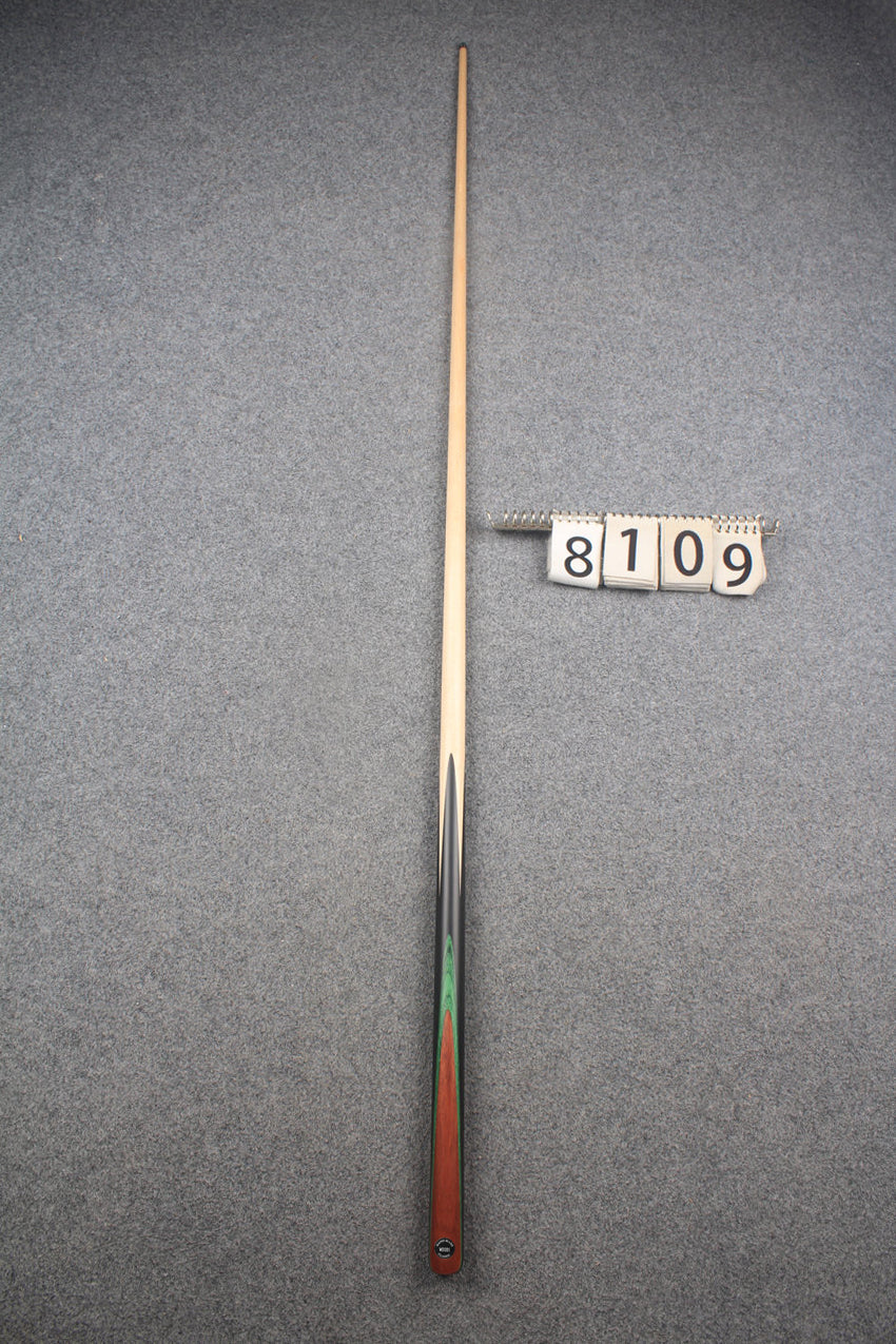 A fantastic looking 1 piece handmade cue . Maple shaft and hand spliced ebony butt with exotic wood splices and colored veneers.