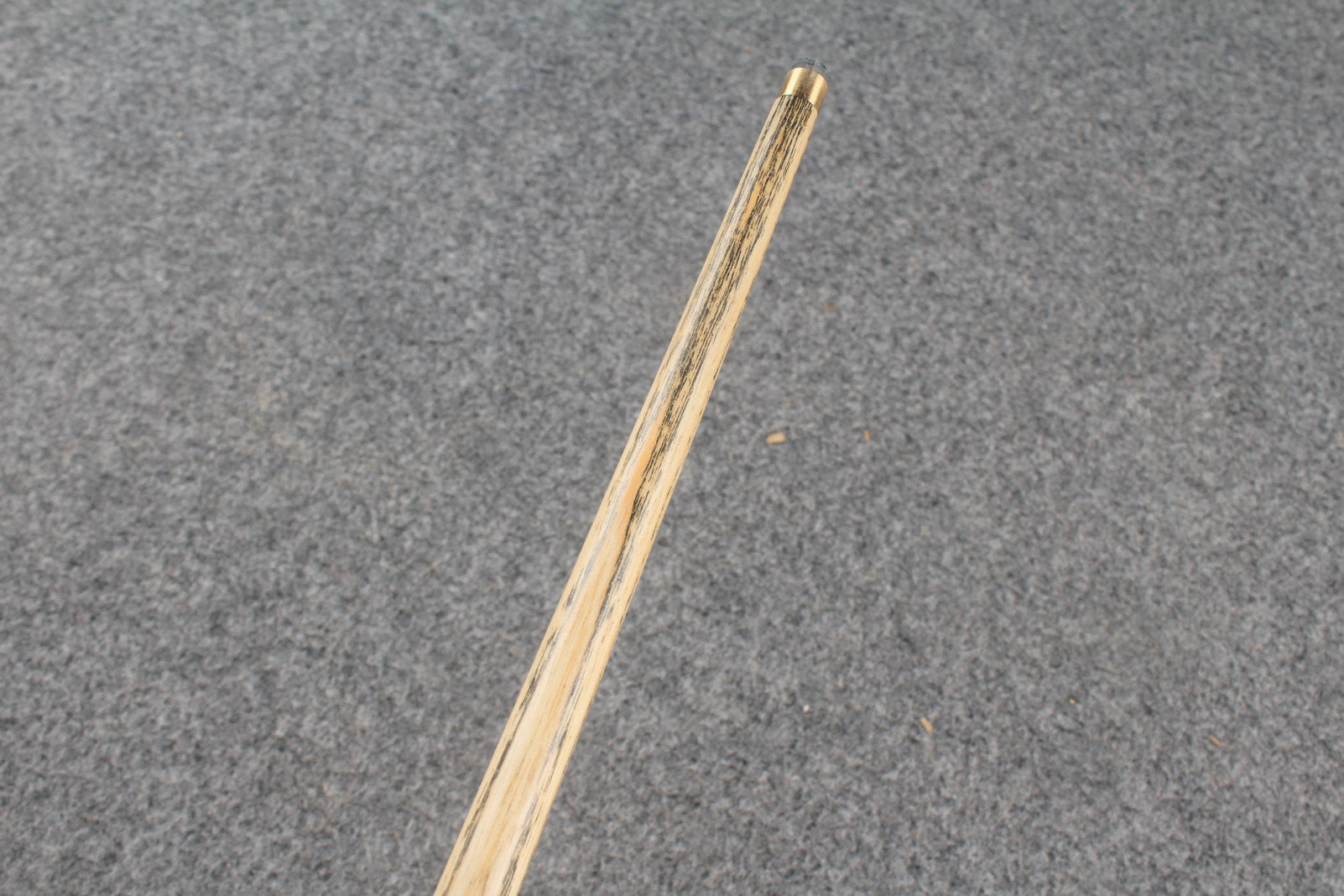 A fantastic looking 3/4 jointed handmade cue . ASH shaft and hand spliced ebony butt with exotic wood splices and colored veneers .