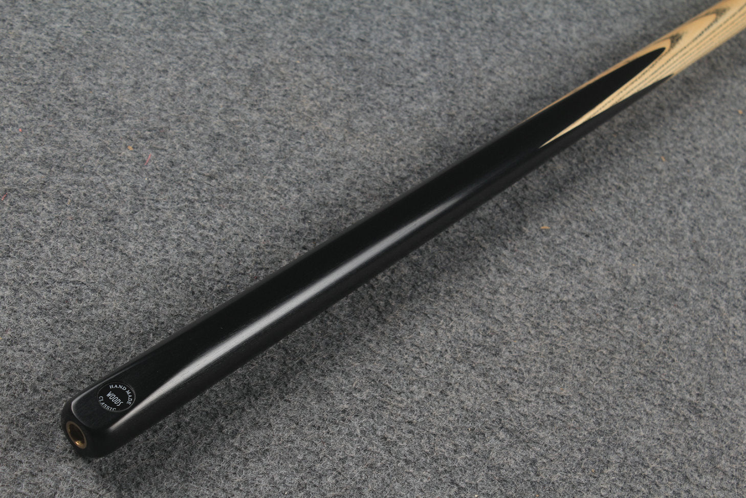 A fantastic looking 1 piece handmade cue . ASH shaft and hand spliced ebony butt with exotic wood splices and colored veneers .