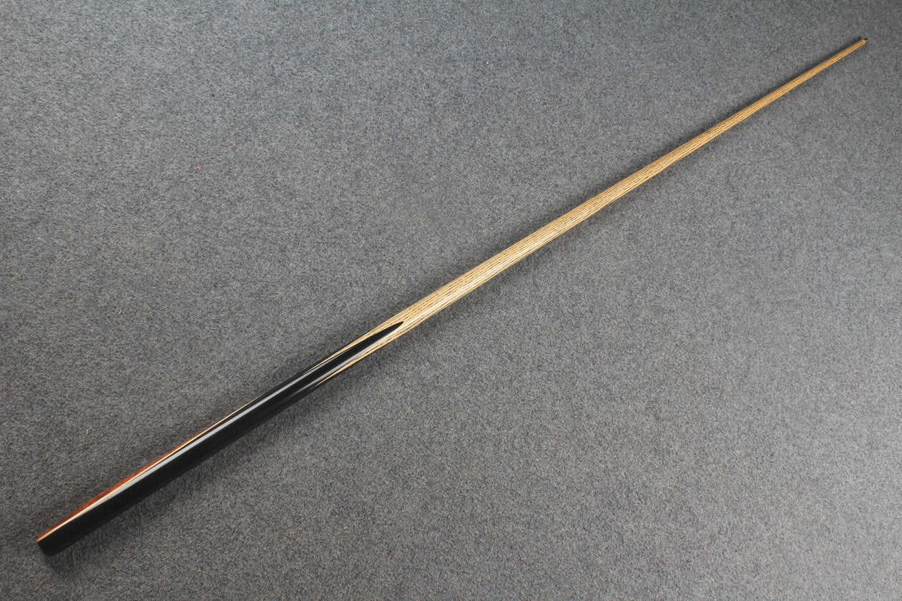 A fantastic looking 1 piece handmade cue . ASH shaft and hand spliced ebony butt with exotic wood splices and colored veneers .