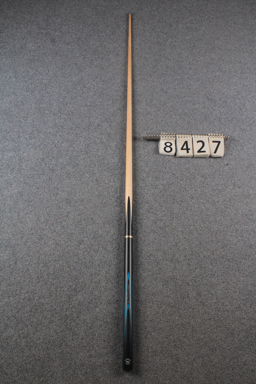 A fantastic looking 3/4 handmade cue . Maple shaft and hand spliced ebony butt with exotic wood splices and colored veneers.