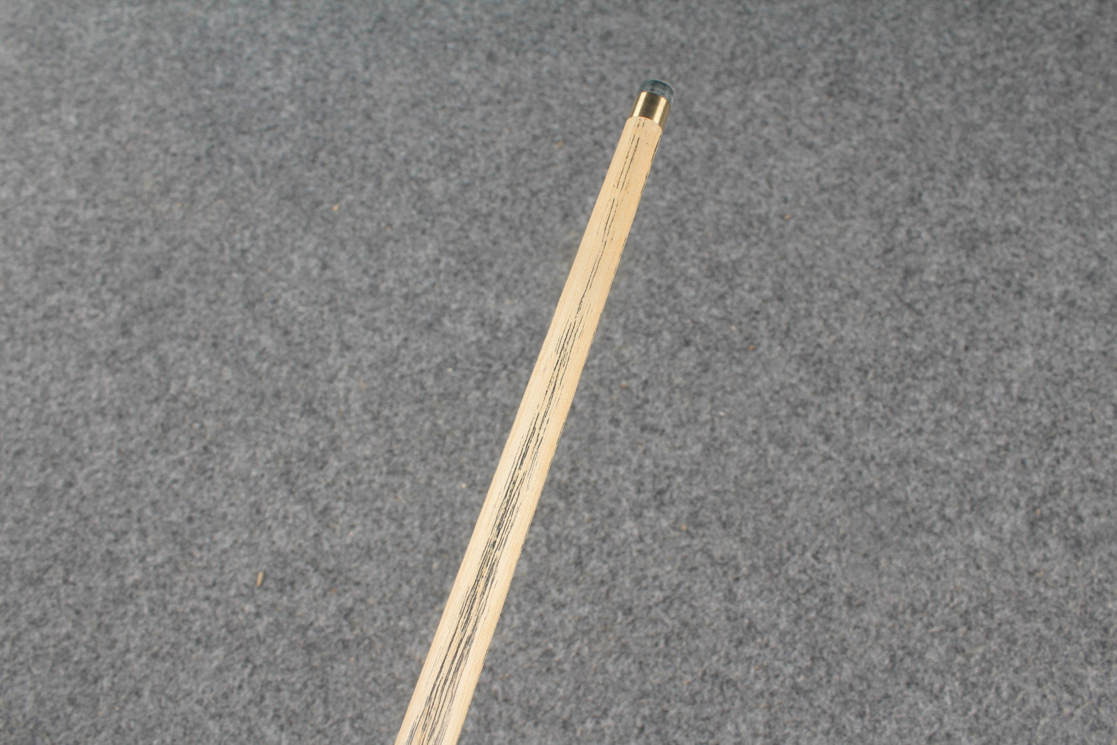 A fantastic looking 1 piece handmade cue . ASH shaft and hand spliced ebony butt with exotic wood splices and colored veneers .