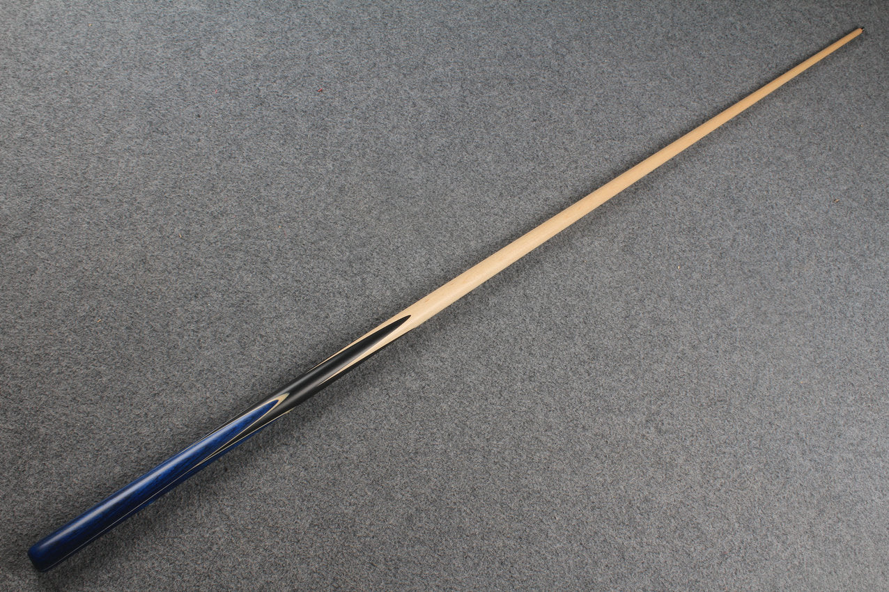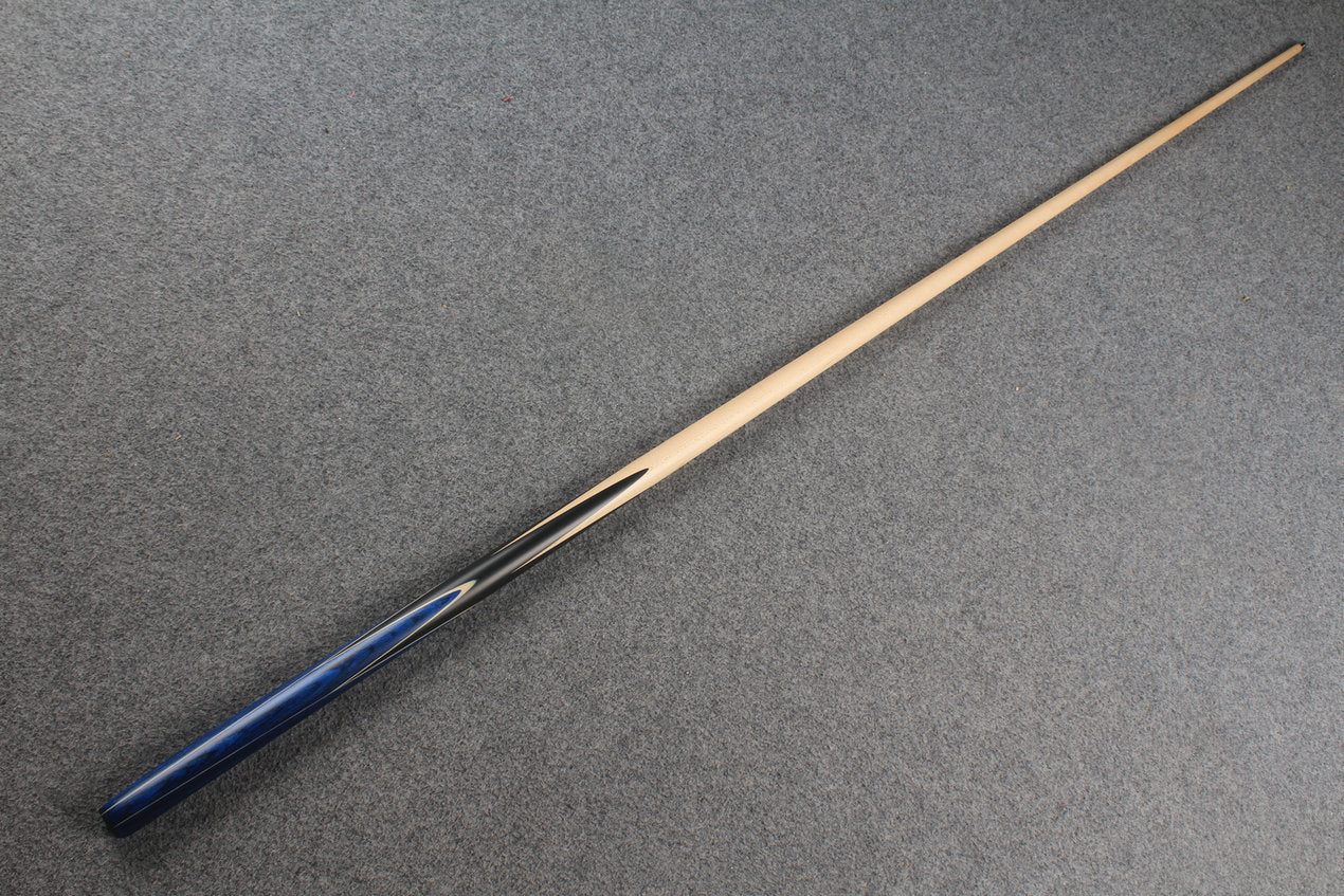 A fantastic looking 1 piece handmade cue . Maple shaft and hand spliced ebony butt with exotic wood splices and colored veneers.