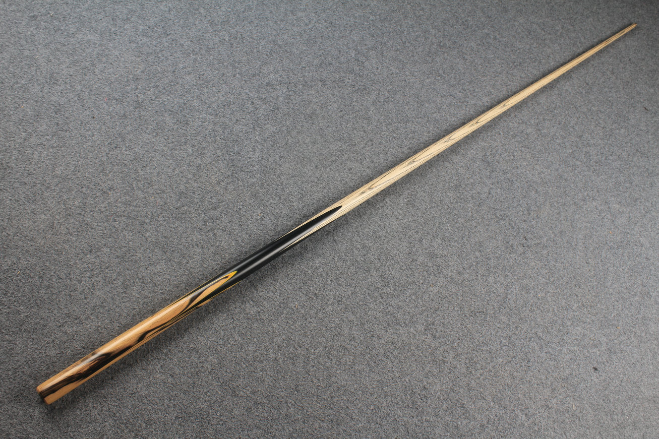 A fantastic looking 1 piece handmade cue . ASH shaft and hand spliced ebony butt with exotic wood splices and colored veneers .