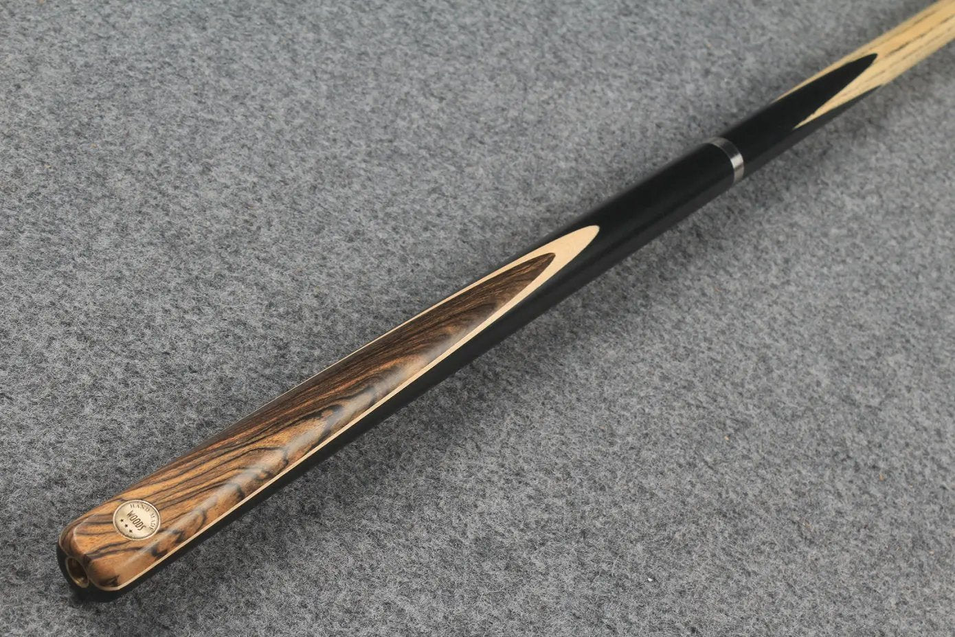 A fantastic looking 3/4 handmade cue . ASH shaft and hand spliced ebony butt with exotic wood splices and colored veneers