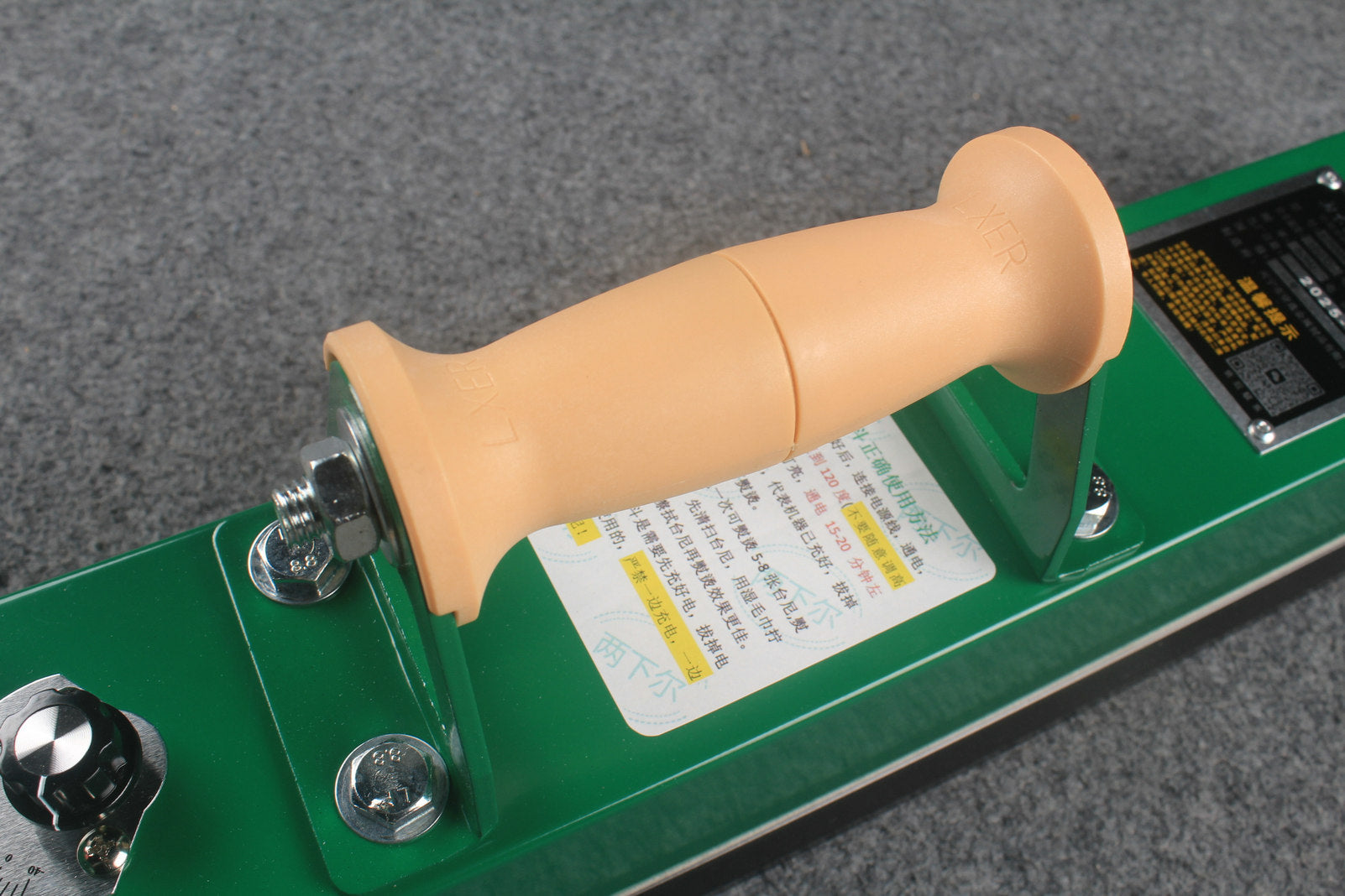 Instruction manual 1.Install the support column of the black tray, pass the screwthrough the black tray hole, turn the support column, andtightenit down. 2. Clean the machine before ironing the machine. Wipe theTini with a wet towel (wring water) to work better. 3.Put silver heat insulation in the black tray, then put the machine on the top, to ensure that the machine with the trayhas been stable on the surface ofthe power cord, connectionelectricity,twist black knob turn to 120 degrees, red light, onbehalfofthe machine charging,15-20 minutes, red light, onbehalfofthe machine charging completed, pull out the powercord can be ironing. 4. The machine can not be charged from people, away frominfammable and explosive items, do not take any debris tocover the machine,the machine during the charging process.the shell will heat, do not touch, to prevent scald. 5.The machine can be pressed 5-8 tables on a charge, ironingin in the direction of the hair on the table, at a uniform speed, do notstay on the table for a long time, so as not to burn the table.