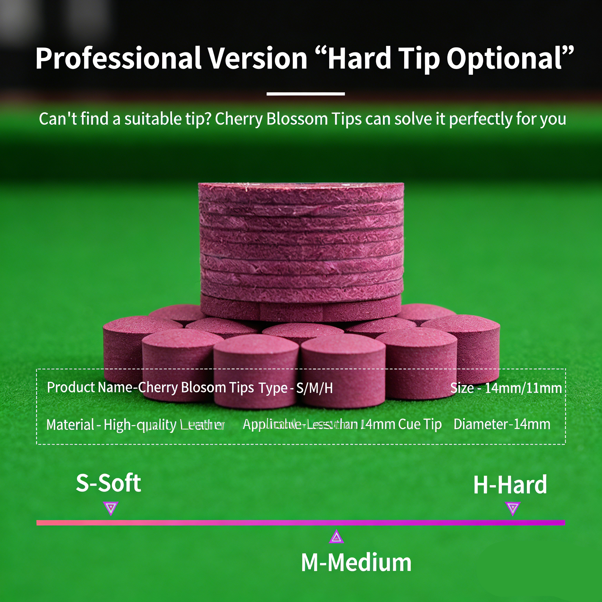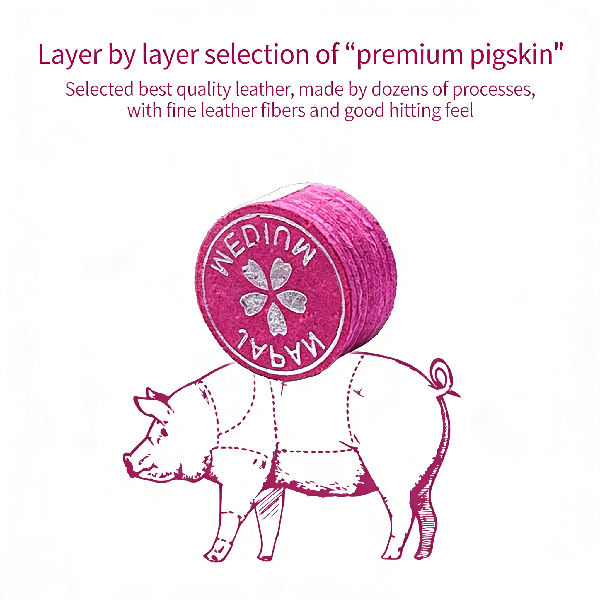 Professical-grade billiiard tip made of premium genuine pigskin leather,ideal for precise control and consistent performance.