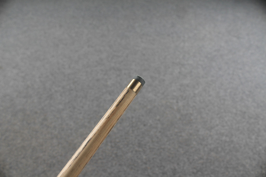 A fantastic looking 1 piece handmade cue . ASH shaft and hand spliced ebony butt with exotic wood splices and colored veneers .